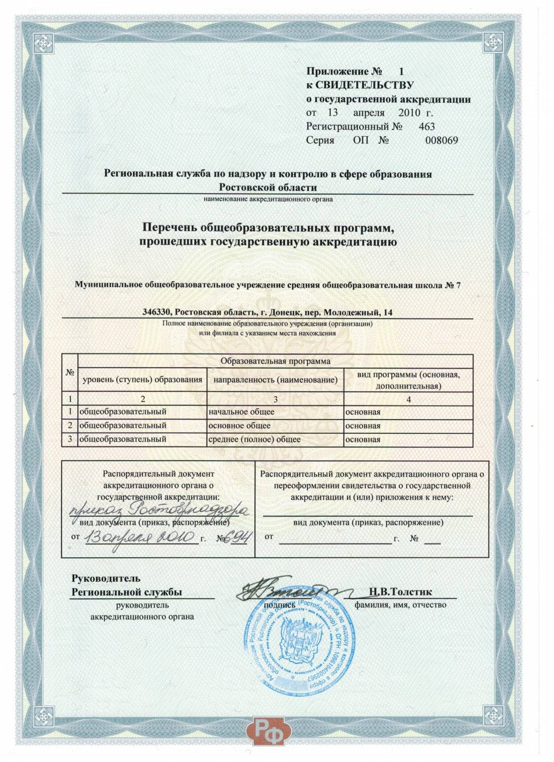 Образовательную программу среднего (полного) общего образования изучает 1 ученика (форма экстернат).