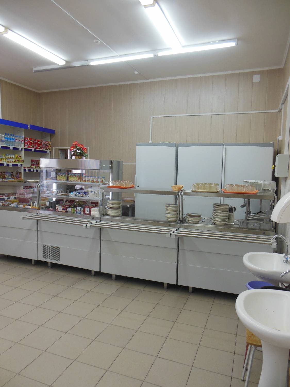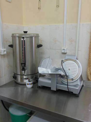 Новое оборудование для школьной столовой, которое приобрела школа, современное, помогает работникам столовой готовить пищу быстрее, качественнее, облегчает работу по мытью посуды, а главное - это вытяжка, зонды, холодильные шкафы и электросушилка для рук.