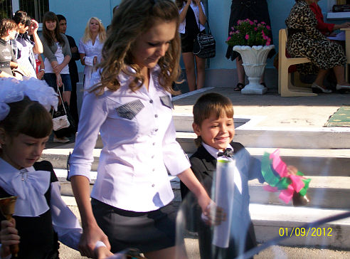 Вот и первый день осени! И пускай он пришелся на субботу (нерабочий день), все равно все ученики нашей школы с удовольствием собрались на торжественную линейку, посвященную Дню знаний. Сегодня главными действующими лицами на ней стали 17 девочек и мальчиков - наших первоклассников, которых поведет в страну знаний первый учитель Белова Ирина Петровна. На праздничной линейке не обошлось и без сказочных героев: Незнайки, Кнопочки, старухи Шапокляк, которая в конце линейки подарила первоклассникам "Пятерки" (пирожные). Удачи и хороших показателей в учебе всем ученикам нашей школы!