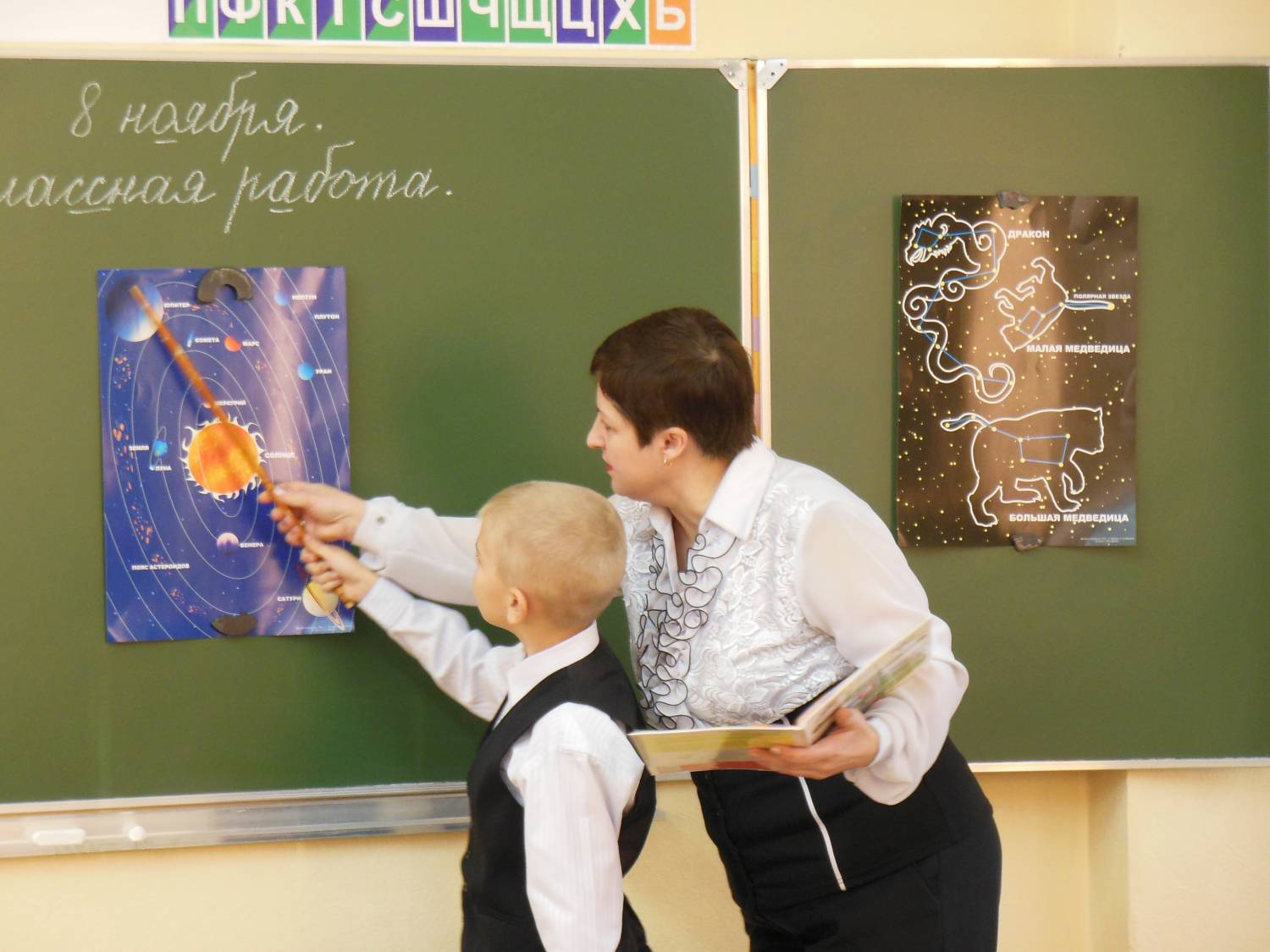 Урок во 2 классе был построен в виде путешествия во Вселенной. С помощью спедств ИКТ обучающиеся познакомились с планетами солнечной системы, звездами, ответили на вопросы Звездочета. Чтобы осветить дорогу морякам, путешественникам, второклассники прикрепили свои звездочки на ночное небо.