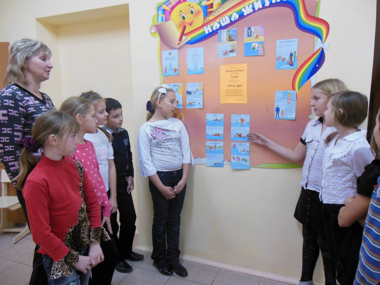 В начальных классах школы на этой неделе прошли классные часы по теме: "Добрые советы от МЧС", на которых классные руководители повторили со своими учениками правила безопасного обращения с электричеством, правила поведения на проезжей части дороги, в районах ветхого жилья. Провели викторины по знанию норм поведения. Ученики 4 класса состали проект "Безопасный путь домой". В зданиях школы оформлены стенды "Добрые советы о МЧС"