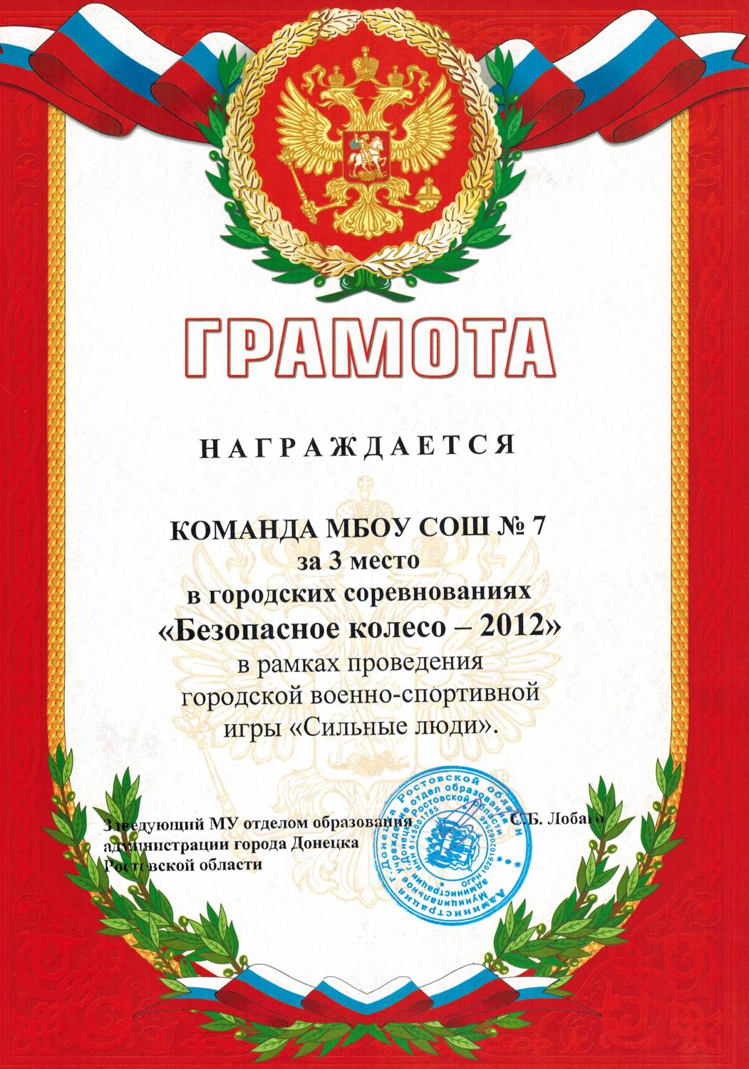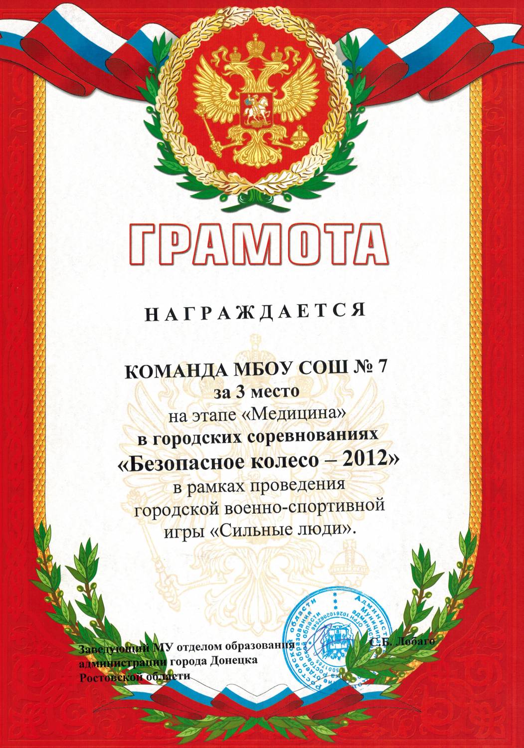 Вчера были подведены итоги городского конкурса "Безопасное колесо - 2012". Мы поздравляем нашу команду, которая успешно выступила на этих соревнованиях и заняла итоговое 3 место, а также 1 место на этапе "Защита беннера" и 3 место на этапе "Медицина".