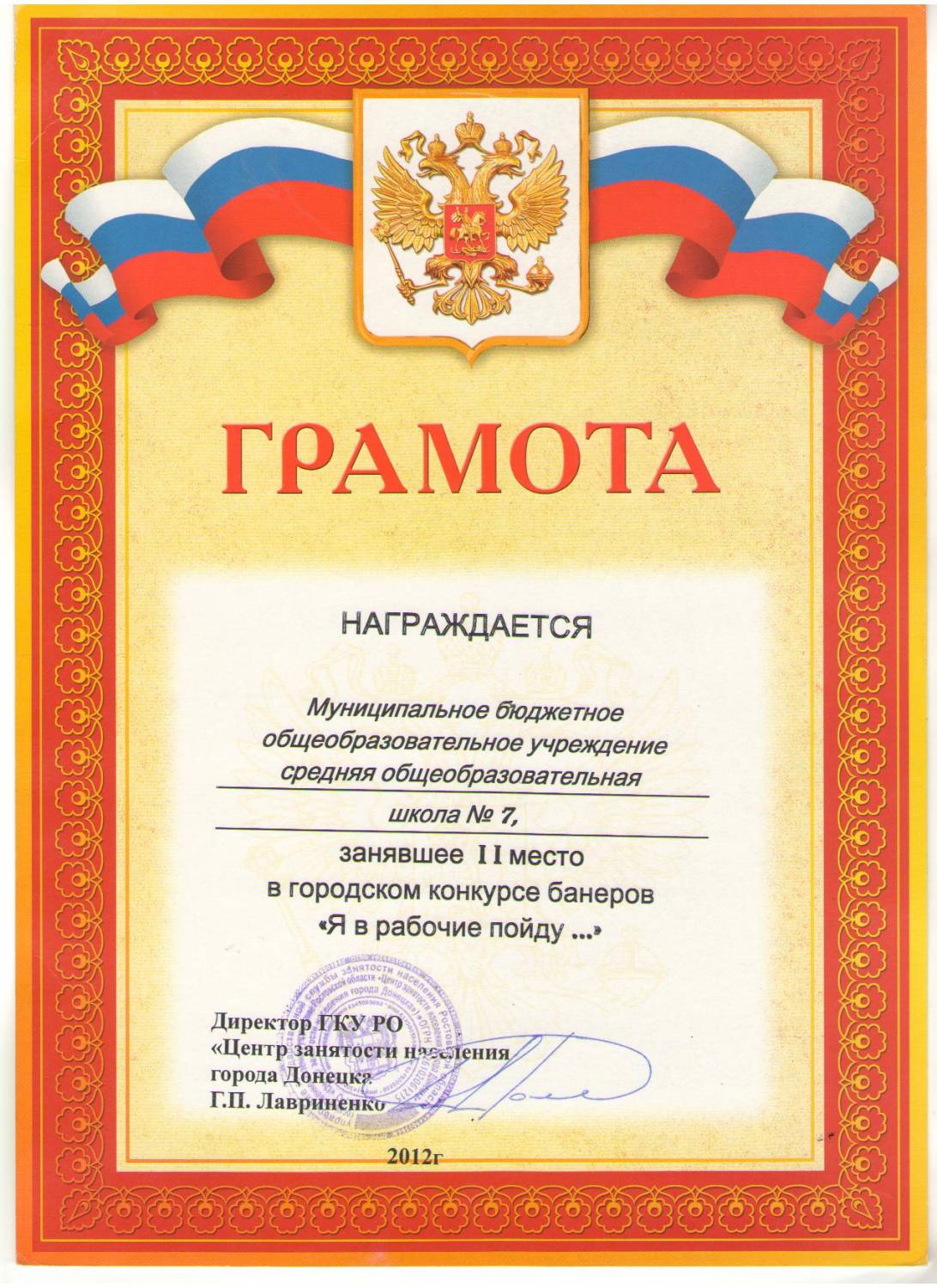 В рамках профориентационных мероприятий выпускники нашей школы в течение месяца посещали училища, техникумы, а также предприятия нашего города. За активное участие в реализации мероприятий данного направления классные руководители 9 класса Тисленко Татьяна Михайловна и 11 класса Пометова Нелля Анатольевна отмечены благодарственными письмами ГКУ РО "Центр занятости населения города Донецка".
